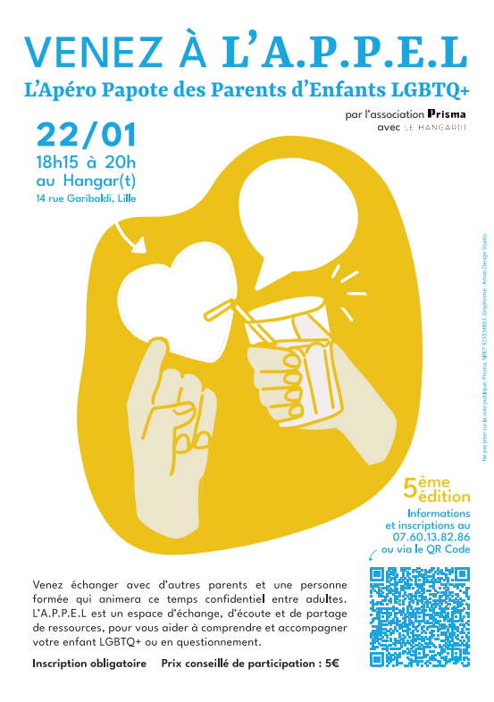 Participez à l’Apéro Papote des Parents d’Enfants LGBTQIA (APPEL) organisé en partenariat avec le Hangar(t) 🍸